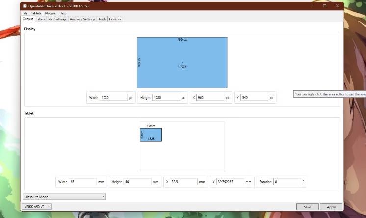 Después de elegir un conductor, debe encontrar un área de tableta cómoda para jugar. A diferencia del arte digital, jugar un juego de ritmo no necesariamente requiere usar el área de tableta completa. Una buena manera de elegir el área de la tableta adecuada es jugar con figuras hasta que encuentre un área que le otorgue una velocidad y precisión decentes del cursor.